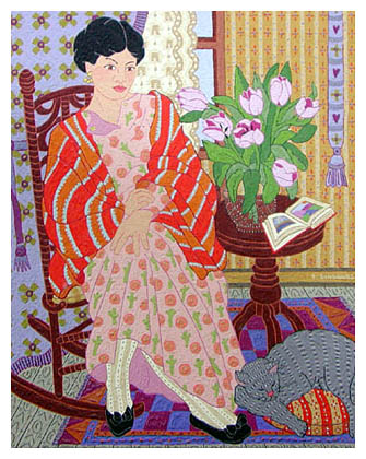Title: Woman in Interior on Rocking Chair Frame: Unframed Medium: Acrylic on Canvas Size: 31" by 24" Price: $900.00