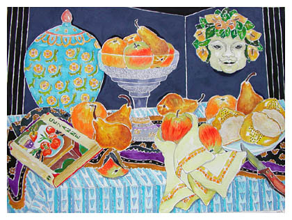 Title: Still Life with Mask and Book Medium: Watercolor, Pen and Ink Frame: Unframed Size: 30" by 22" Price: $675.00